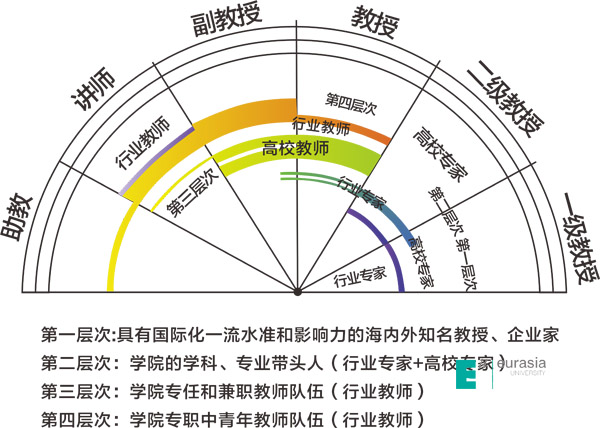 为此,beat365正版唯一官网必一在2012年建构出彩虹图师资发展规划(图2),由专任教师、兼职教师、学科带头人和海外名师四个层次构成,作为二级学院教师队伍重构和重建的重要指引。