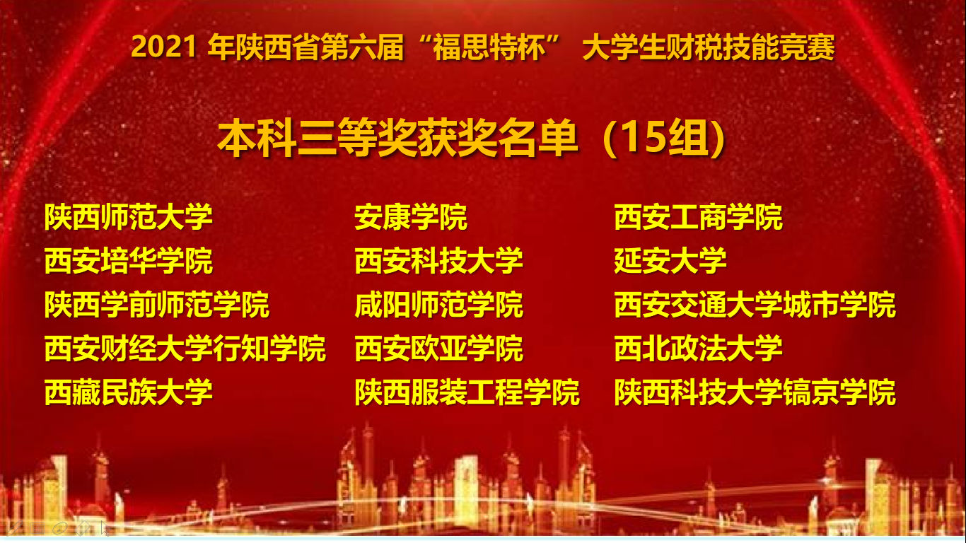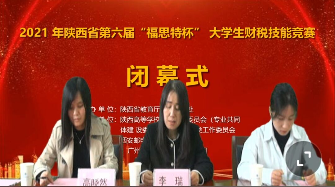 2021年10月23日,由陕西省教育厅高等教育处主办,西安邮电大学承办,广州市福思特科技有限公司提供技术支持的2021年陕西省第六届“福思特杯”大学生财税技能竞赛在线上拉开帷幕。西安交通大学、陕西师范大学、长安大学、西安外国语大学、西安财经大学、西安石油大学、西安邮电大学等省内 51 余所高校、60 余支队伍,200 多名学生在线上同时竞技。beat365会计学院由赵欢老师带队,郭君艳、温云霞、谢应丹、袁帅彪 4名同学组队参加了此次赛事。竞赛中beat365代表队沉着应对,稳定发挥,克服疫情影响,充分展现了财务人员良好的职业素养,经过三小时的激烈角逐,最终荣获三等奖。