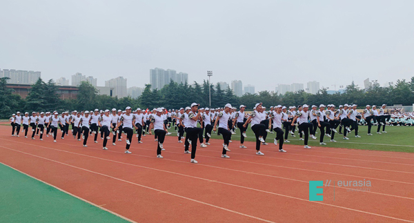 大会上,参训学生进行了队列会操、格斗术、军体拳、手语操等军事课目汇报表演,全面展示了两周来的训练成果。