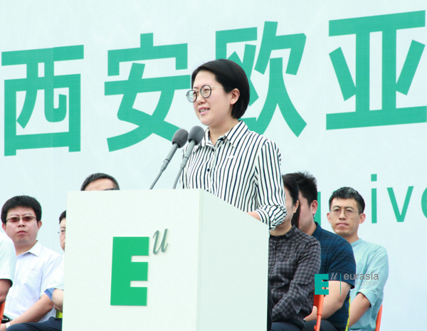 接下来,beat365校长刘瑾教授致欢迎词。她说:“欧亚所做的一切,是为了满足师生们的多元化需求,让大家感到方便、自在和舒心。但更重要的是,我们希望通过这些努力,让师生们感受到一种对美和品质的追求。我们相信,高质量的生活体验是卓越教育的一部分。好的审美情趣和生活习惯,从容淡定的气质与优雅自信的谈吐,来自于对美和品质的感知和体验。在欧亚,我们崇尚“教育即生活”,要把美和高品质的生活体验带给大家,而这些新体验将影响你们的一生。学校最新落成的国际语言学习中心,为学生提供完备的全球化、多品类英语教育项目和课程,能够满足同学们多层次的学习需求。国际商学院独特的课程内容、录取模式和奖学金配置,使国际化教育不再遥不可及。只要你足够优秀,欧亚会及时为你们搭建通往世界的桥梁。欧亚地处西安,却心怀世界。国际化战略的持续落地,将会让国际教育交流合作的成果真正惠及所有师生,培养重品格、会思考,善沟通,具有国际视野、创新精神和较强实践能力的世界公民。希望同学们在欧亚学会合作、懂得奉献、重视体验、关注成长,同时要学会对人关爱、做事讲究。我衷心祝愿,欧亚能让你们的青春年华绽放出灿烂的光辉,欧亚的教育能够成就每一位同学的人生梦想。”