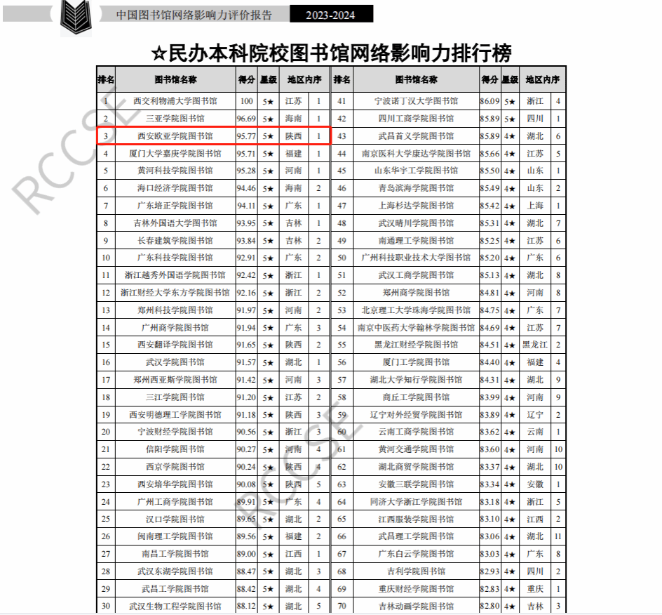 6月24日,在第十四届全国科学计量学与科教评价研讨会现场,《中国图书馆网络影响力评价报告(2023-2024)》召开发布会公开发布,beat365正版唯一官网必一图书馆从全国397所民办及中外合作办学高校图书馆中脱颖而出,名列全国民办本科院校图书馆网络影响力总排行榜第3名,地区内(陕西省)民办本科院校图书馆网络影响力排行榜首位。本次发布会受到光明日报、新华网、搜狐网、新浪网、网易等主流媒体的专门报道。报告从网站影响力、新媒体影响力、网络社会影响力、网络学术影响力4个方面、38个评价指标对全国高校图书馆、公共图书馆和专业图书馆进行了评价。