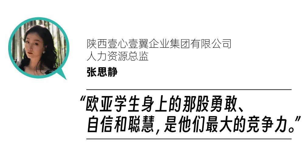 谈到毕业生的考核标准,Sophia说:“除了创新能力、踏实负责以外,我们还希望学生思维清晰、心怀理想,对自己的职业生涯有明确的规划。比方说欧亚的学生们,通过在校期间参与的活动培养出优秀的执行能力和表达能力,这一点是很重要的。”
