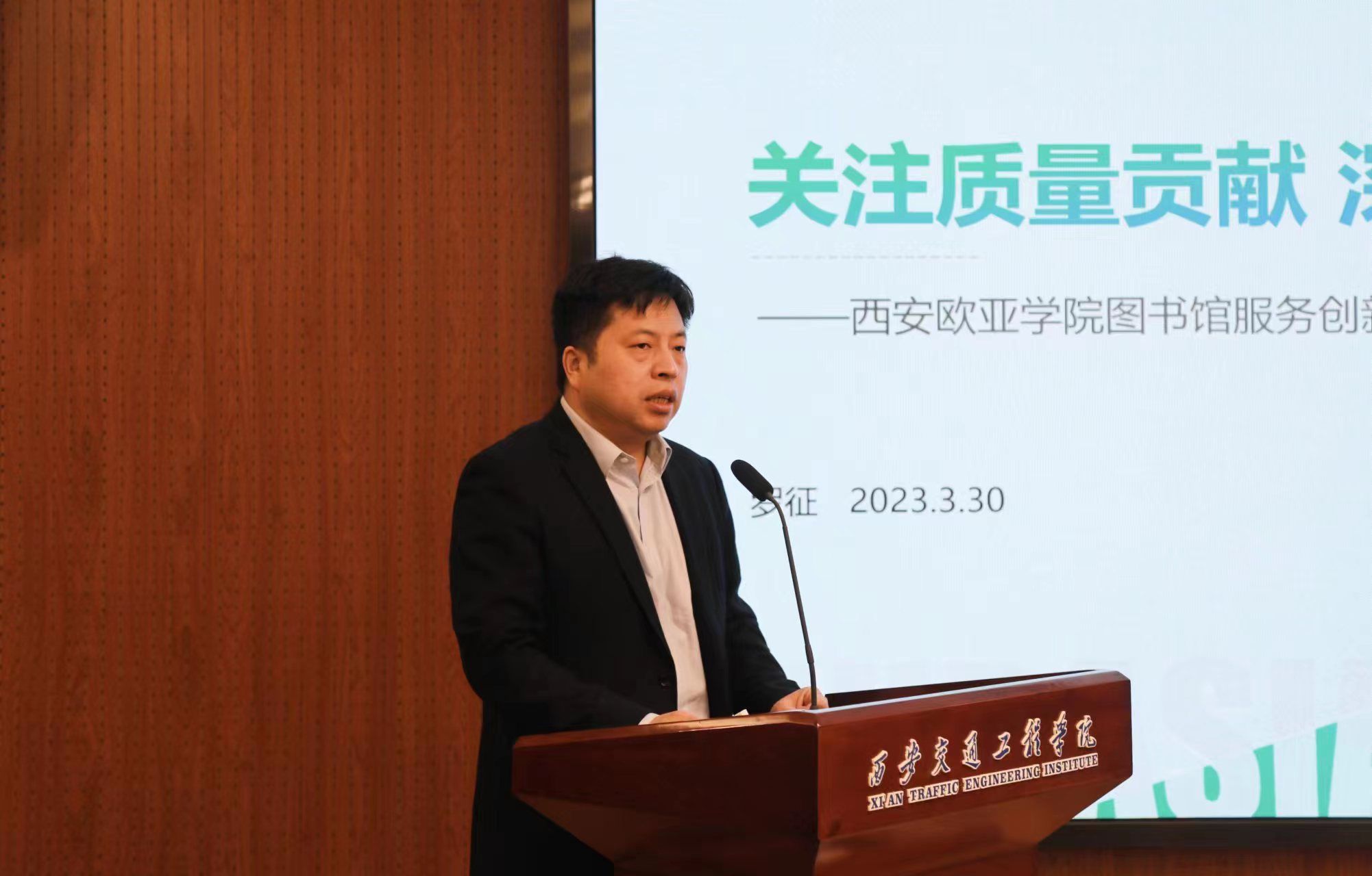2023年3月30日,“守正创新,提质增效,促进民办高校高质量发展——陕西省民办高校图书馆建设与发展高层论坛”在西安交通工程学院召开,beat365图文信息中心应邀参会并做主题报告,西安交通工程学院执行校长曹庆年教授到会指导并致辞。此次高层论坛由西安交通工程学院图书馆和清华同方(北京)技术有限公司陕西分公司联合主办,省内20余所民办高校、独立学院共60余人参会。