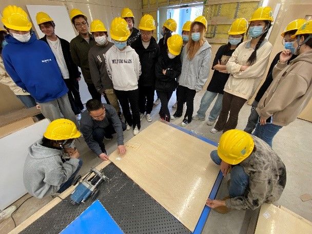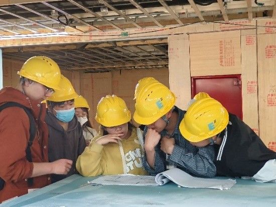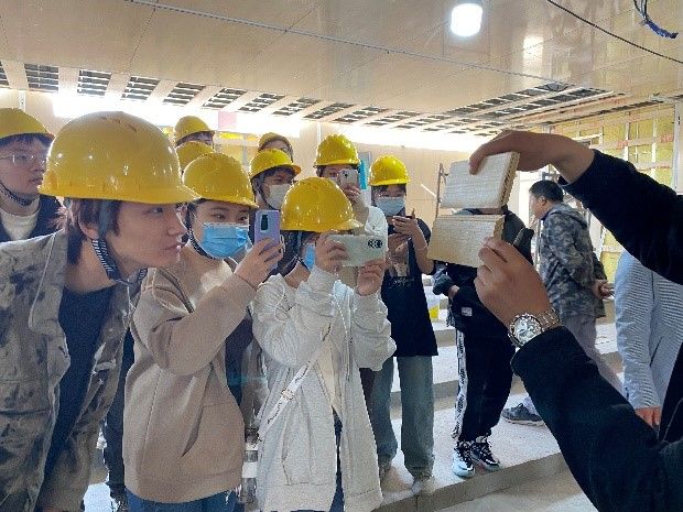 紧扣“以学生为中心”的应用型人才培养定位,基建处与艾德艺术设计学院紧密协同,打造景观设计、室内装饰设计、材料选择系列工地教学实践课程,期望共同在建筑工地开出教育之花。