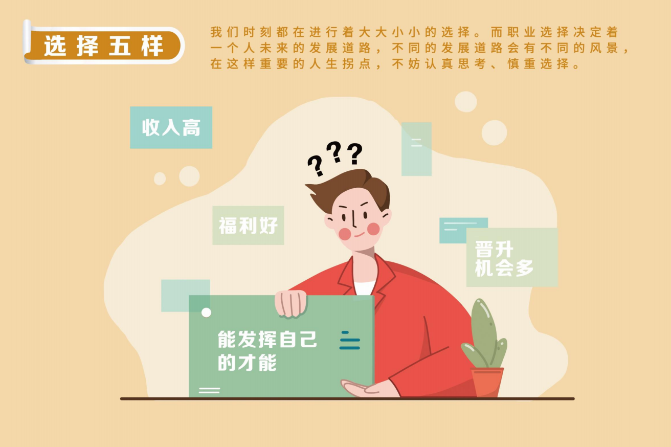 我们时刻都在进行着大大小小的选择,而职业选择决定着一个人未来的发展道路,不同的发展道路会有不同的风景,在这样重要的人生拐点,不妨认真思考、慎重选择。我们将帮助你澄清求职过程中的职业选择标准,明确个人的职业价值观。
