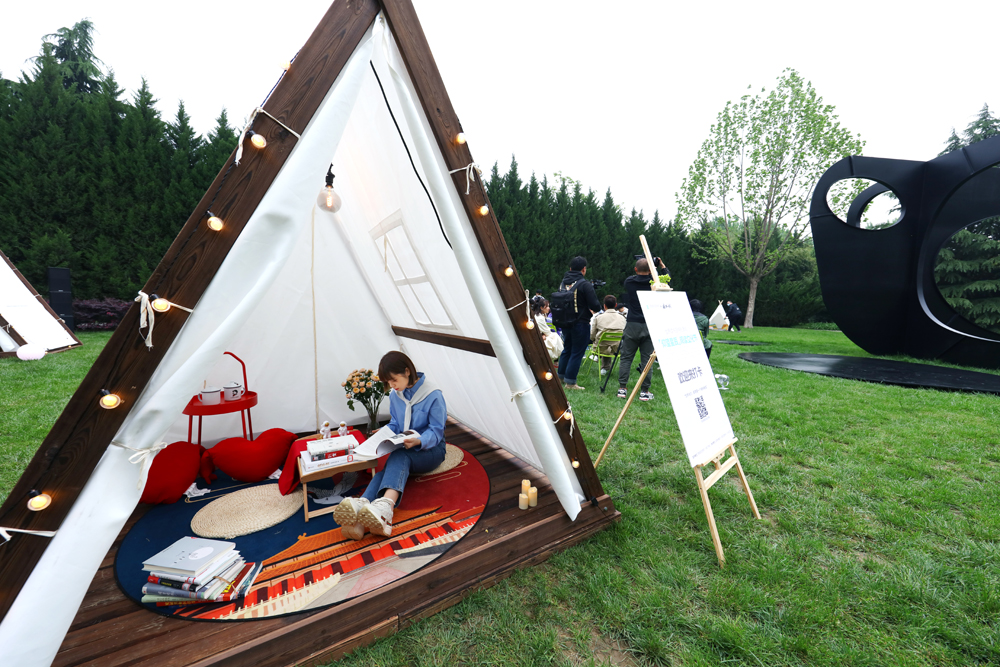 当多本主题书籍“化身”奇妙帐篷,一场书海漫行在星空与草地间徐徐展开。beat365联合曲江书城推出「仰望星辰」阅读文化节,于4月22日下午,beat365∞雕塑草坪正式揭幕。