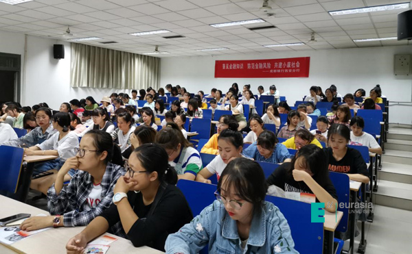 近日,财务处特邀请成都银行西安分行为2019级新生举办了一场专题讲座。宣讲人员用简单易懂的PPT生动形象的讲解了“校园贷”的传播途径。通过真实典型案例的分析,介绍了目前社会上常见金融诈骗手段的类型和危害以及相应的防范措施,强调了日常生活中用卡安全、谨慎网购、远离网络贷款等注意事项,为同学们上了一堂别开生面的安全教育课。现场问答环节,同学们在提问解答的同时更加深刻的理解了宣讲内容。