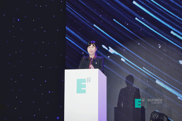 首先,我向所有获得表彰的优秀学生及学生团队表示祝贺:你们是同学们的榜样、更是学校的骄傲!其次,我要向所有指导老师表示感谢,因为有你们的陪伴与付出,同学们才在欧亚遇见了更好的自己。