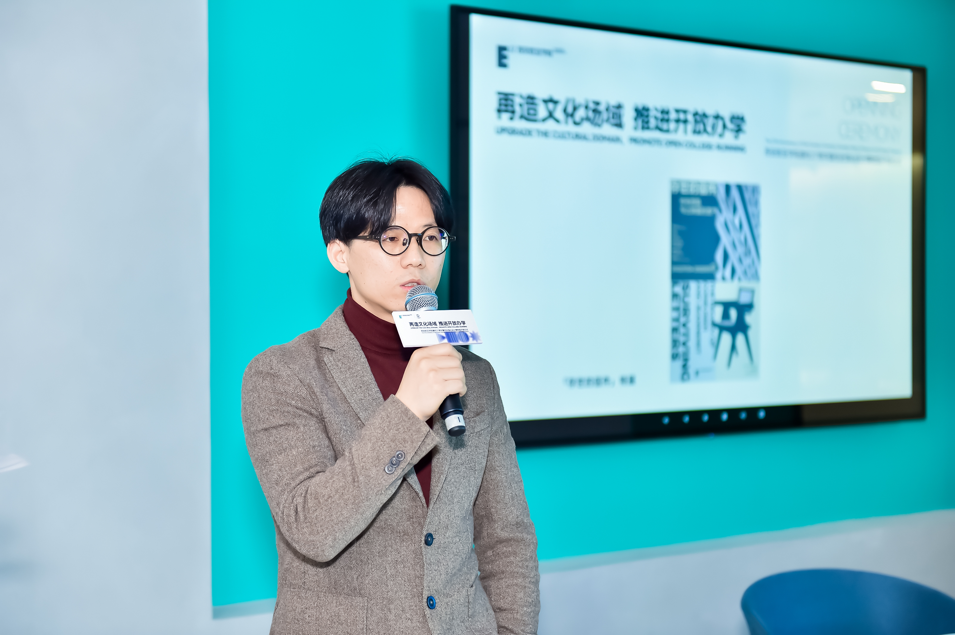 展览策展人、YIMU STUDIO创始人黄飞春先生为展览揭幕致辞。“此次展览的初衷是为了从设计的角度,为设计、城市更新、未来生活方式带来启发,基于欧亚开放办学理念的践行,让大师经典作品真正落地于校园,与师生产生更多火花。希望更多的设计实践团队,能够持续和beat365正版唯一官网必一产生更多的产学研合作。”