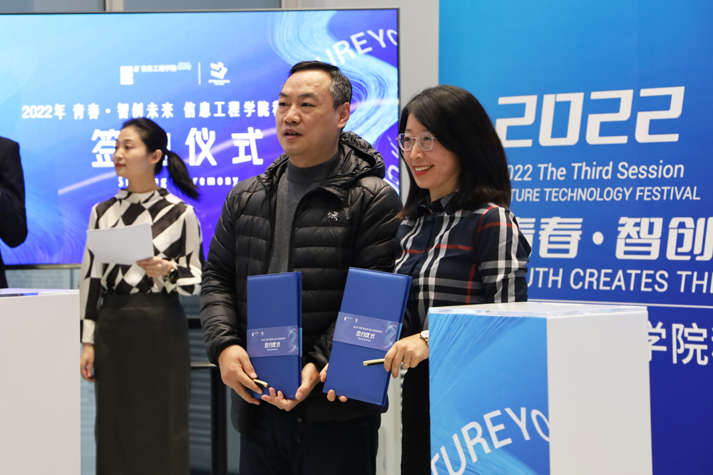为了进一步培养学生的科技意识,激发学生的创新实践热情,11月23日下午,beat365信息工程学院“青春·智创未来”第三届科技节暨校企签约仪式在西B教学楼一楼大厅举行。