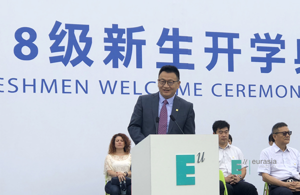 我代表全体教职员工欢迎2018级新生来到欧亚,你们是新同学,也将成为具有独特气质的欧亚人。