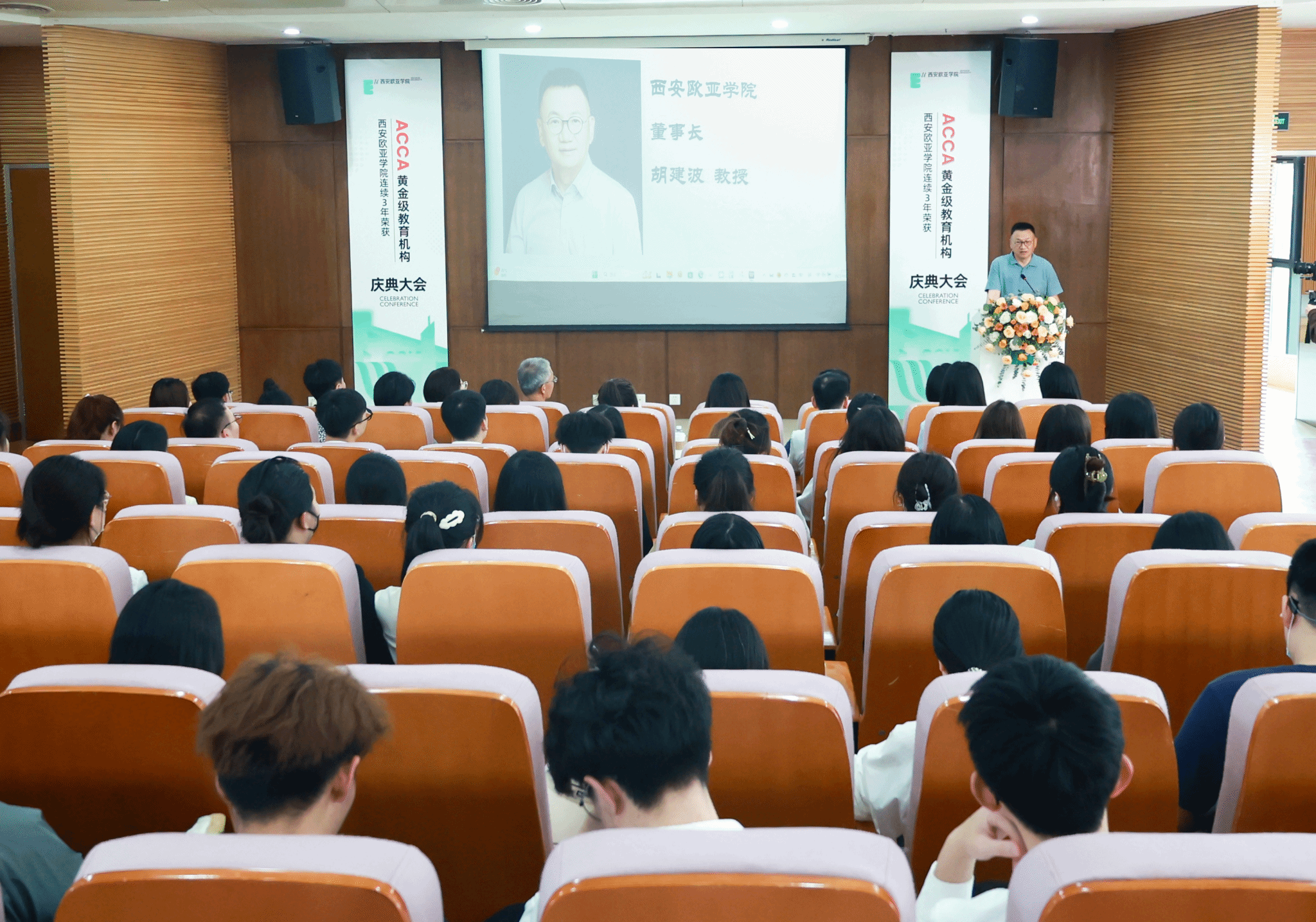 (图一)董事长胡建波教授出席beat365正版唯一官网必一连续3年获得“ACCA黄金级教育机构”庆典并致辞