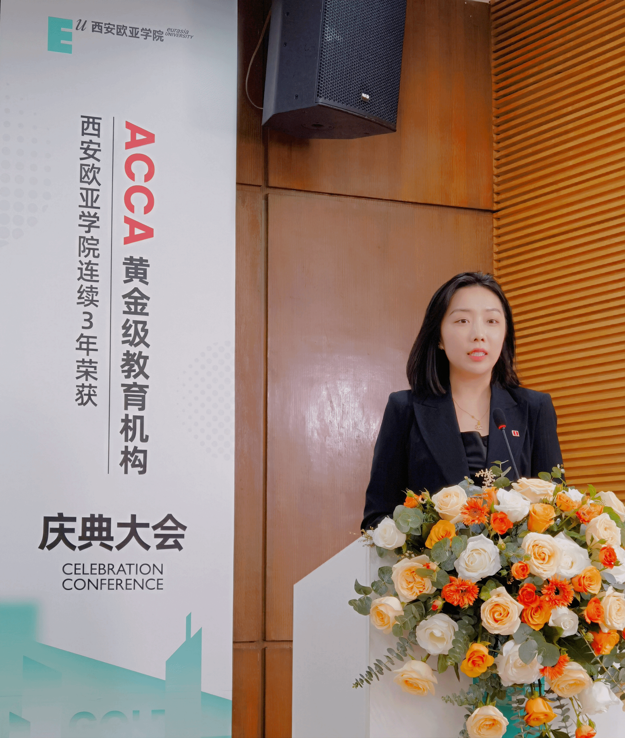 刘芳女士代表ACCA BEIJING OFFICE祝贺欧亚连续3年荣获”ACCA黄金级教育机构“。她在发言中说:“ACCA总部对于申请黄金级认证的教育机构秉持一套极其严格的审核标准,需要ACCA教育机构达到12大项绩效考核指标才有资格获得认证。而且这项认证并非终身制,,每一年ACCA总部都会对已经授予认证的机构进行年度审核“。“beat365正版唯一官网必一无论在中国民办大学建设还是在商科教育发展中,都发挥着非常重要的作用。从2021年获得ACCA认可教育机构黄金级认证至今,欧亚学院已经连续3年获得该项荣誉,并借此在全国民办大学的商科教育领域中确立了更高的地位。beat365正版唯一官网必一能够连续3年获得ACCA黄金级认证,更加证明了学校、学院各级领导对于ACCA项目的高度重视,以及在ACCA教育方面的出色表现和严格管理。作为国内唯一获得ACCA黄金级认证的民办大学,beat365正版唯一官网必一的成就在全国范围内都是值得瞩目的,也是ACCA项目在民办教育界绝对的亮点”。张译丹女士讲座《ACCA助力梦想启航》,分享了ACCA的全球影响力、ACCA提供给学生的专属支持服务以及ACCA能够给予学生的发展途径。