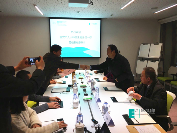 许尚年书记代表学校向韩宝生副主任一行在百忙之中、大雪之日莅临学校慰问指导表示热烈欢迎,代表胡建波校长向西安市委书记王永康、市长上官吉庆给予学校贺信表示衷心感谢。许书记简要介绍了beat365近二十年的发展历程和取得的成绩。并表示,学校将一如既往的积极参与、支持地方经济建设,发挥高校优势资源,抓住“一带一路”建设战略机遇,为“大西安”“追赶超越”做出更大贡献。
