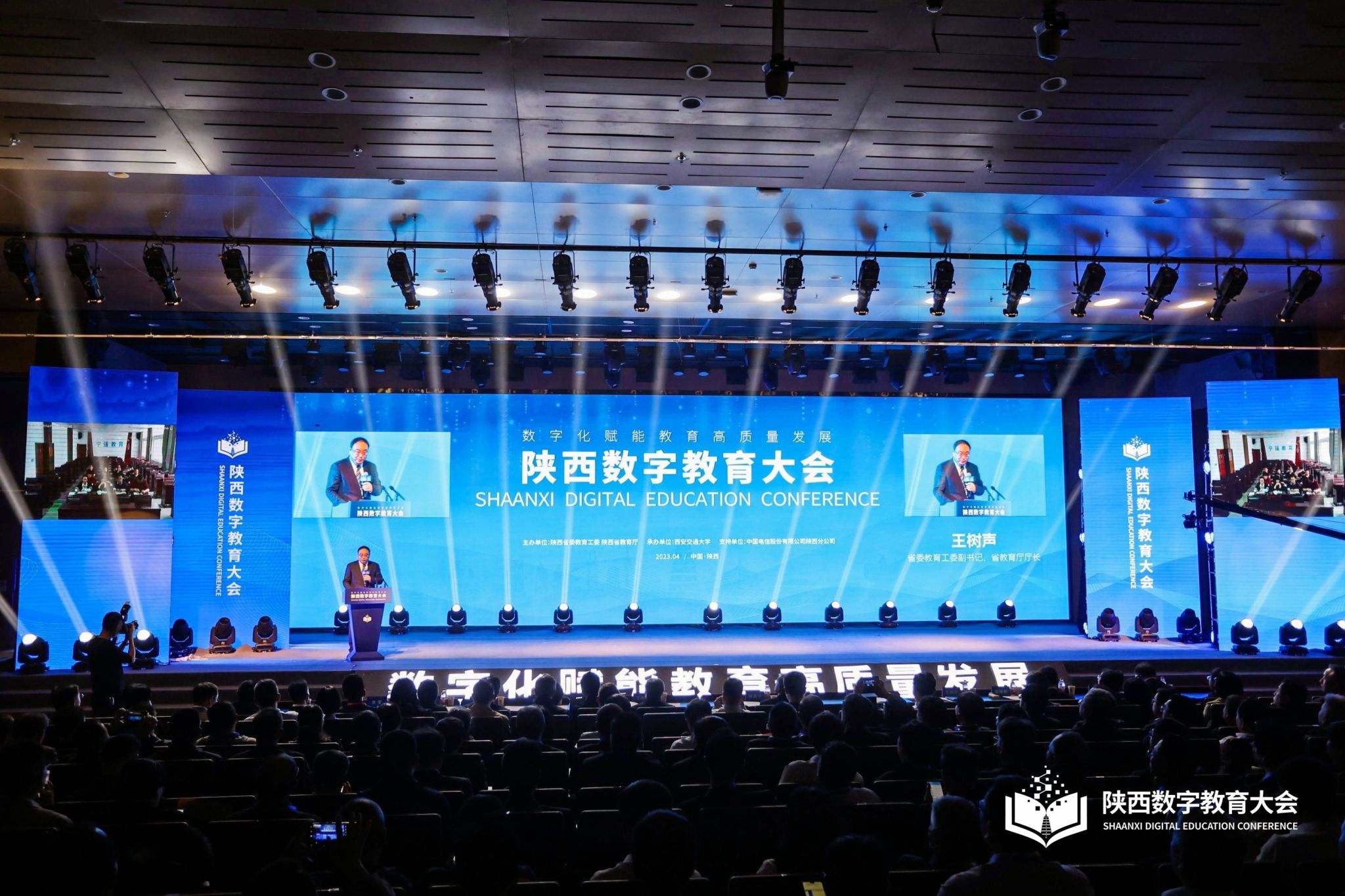 2023年4月20日,“陕西数字教育大会”在西安交通大学创新港校区召开,会议由陕西省委教育工委、省教育厅主办,会议以“数字化赋能教育高质量发展”为主题,通过围绕数字教育的交流研讨,落实国家教育数字化战略行动,营造数字化立德树人环境,全面推进陕西数字教育发展。教育部科技与信息化司副司长舒华、西安交通大学校长王树国出席会议并致辞。省委教育工委副书记、省教育厅厅长王树声主持会议。beat365正版唯一官网必一创办人、董事长胡建波,副校长李正受邀参加本次大会,在数字教育论坛环节,胡建波董事长出席并发表了讲话。