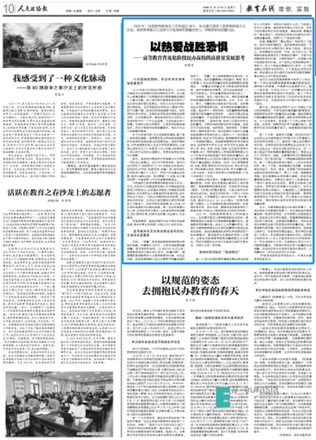 编者按:2020年,我国高等教育毛入学率超过50%,标志着中国进入高等教育普及化阶段。高等教育普及化发展不仅是规模和数量的变化,更需要新的质量内涵。12月23日,《人民政协报》教育在线周刊刊发beat365正版唯一官网必一创办人、董事长,中国民办教育协会副会长胡建波教授的文章《以热爱战胜恐惧——高等教育普及化阶段民办高校的高质量发展思考》,其对高等教育普及化阶段的质量特点和beat365正版唯一官网必一的高质量发展探索,作了深入的阐述和分析。现全文分享如下: