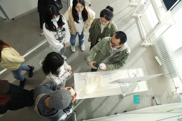 跨校际的线上交流与线下操作贯穿整个项目, 2020年8月欧亚学院艾德数媒专业负责人郑乐老师以“光与影:非线性时间维度下的文物展示设计“为课题,向两所院校项目参与人员进行了线上宣讲;2020年9月20日“光与影”项目在今年的设计马拉松中亮相,由两校学术指导团队的老师带来了数字世界中人工制品的在线讲座;2020年11月在两校阶段成果展览中,各方的作品创作者,对于项目进展、作品理念、制作技术、作品材料和使用工艺等方面,进行了多次沟通交流与学习。这样跨国家、跨高校的线上线下联动合作教学,也是对未来教育模式的重要尝试。