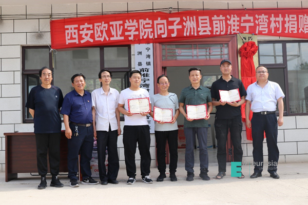 学校党委书记于孟晨代表学校向前淮宁湾村村委会捐赠了价值5万多元的办公用品一批。