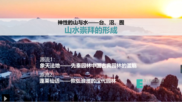 园林是城市山林的缩影,是壶中天地的情怀,中国的园林艺术是东方特色人文的审美情趣。我们从中国古典园林早期的“山水崇拜”、”山水城市”框架的构建,到“昆仑神话”、“蓬莱神话”演绎出的“一池三山”的园林基本模式,都在探寻园林美学之思想渊源。
