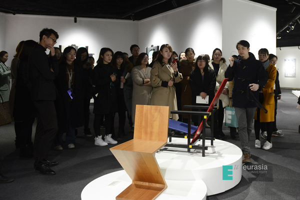 了解了设计博物馆的基本情况,当然要去实地体验才能加深理解与消化。品牌传播部吴淼老师带着大家来到图书馆二层设计博物馆现场,近距离地观看作品,并详细介绍了每件作品背后的故事。