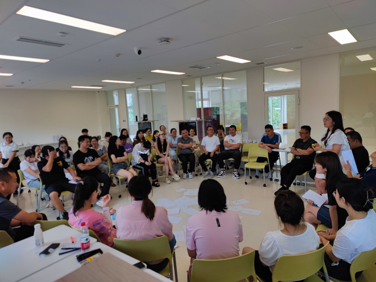 特别是对于小学儿童来说,教师是影响其心理健康的重要社会支持系统,身心健康的教师会对学生的健康发展产生重要影响。而教师职业是需要大量情感劳动的职业,因此,教师自身的心理健康非常重要,教师自身也要学习如何进行自我心灵关照。本次培训中,佀建锋老师通过团体心理减压辅导,让学员们学会如何进行自我心理调试,也让学员们之间相互支持,相互学习。大家在身心放松的同时,也学习到了如何在小学班级管理和教学中运用团体辅导的技巧。