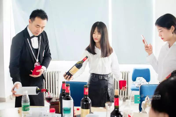 今年6月,中国侍酒师文化研究院来到欧亚,开展了全国大学生侍酒师精英选拔赛的宣讲会。很多同学是第一次了解到侍酒师这个职业,许是“一见钟情”,宣讲会一结束,大家便踊跃地报名参赛。