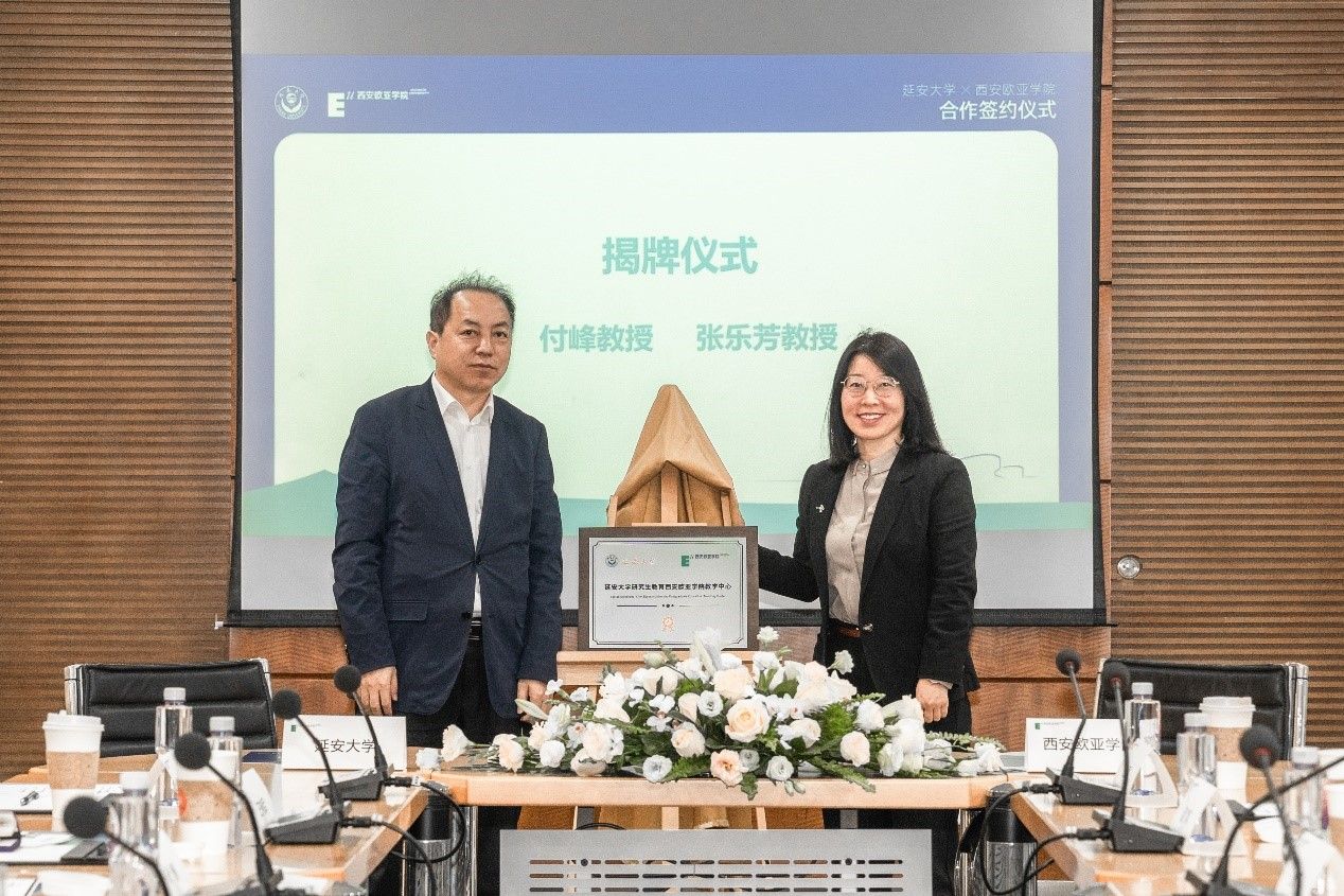 beat365正版唯一官网必一校长刘瑾、延安大学副校长付峰分别代表双方致辞,延安大学经济与管理学院院长王进、beat365正版唯一官网必一会计学院院长谢涛代表双方签署战略合作协议,延安大学副校长付峰、beat365正版唯一官网必一副校长张乐芳为“延安大学研究生教育beat365正版唯一官网必一教学中心”揭牌,签约仪式由beat365正版唯一官网必一会计学院院长助理张玮主持。在交流与分享环节,会计学院院长谢涛介绍了数智时代下beat365正版唯一官网必一会计学院人才培养与创新,会计学院教师代表卫源、赵欢分享了《创新思维与商业模式》、《财务信息化工具与应用》课程建设。延安大学教务处副处长叶倩,延安大学经济与管理学院党委书记付旭、副院长陈云桥、MPACC中心主任王晓军、会计教研室主任张焕平、教学秘书王秀慧,beat365正版唯一官网必一会计学院财务管理教研室主任宋粉鲜、实训中心主任罗艳妮及相关部门负责人共同见证了签约仪式。