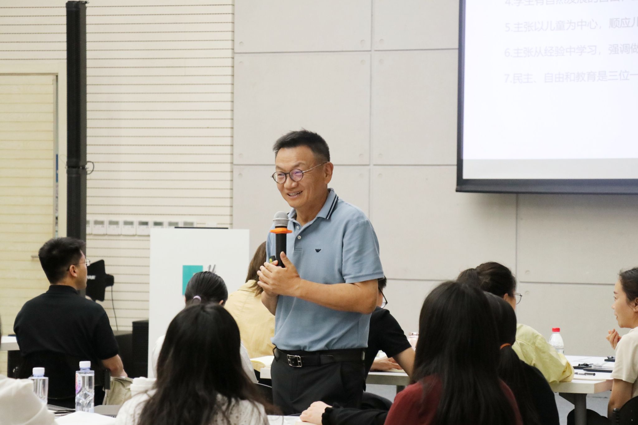 胡建波教授从进步主义教育、要素主义教育、布鲁贝克的高等教育哲学观出发,结合联合国教科文组织提出的教育的四个支柱——学会认知、学会做事、学会共处、学会生存,立足欧亚学院“和而不同”的校训,讲述了“欧亚的育人逻辑”,即:育人的前提是爱人;育人的本质是改变观念;育人的成效在于“言传身教”。提出了欧亚学院“以学生为中心”的育人模式。