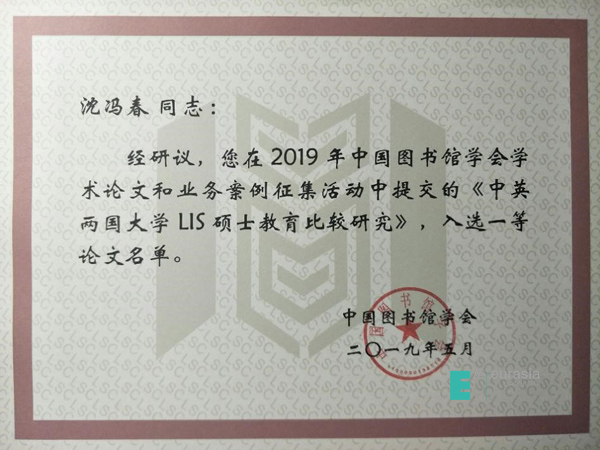 在2019年中国图书馆学会学术论文和业务案例征集活动中,beat365图文信息中心沈冯春老师提交的论文《中英两国大学LIS硕士教育比较研究》荣获一等奖,并被收录进《中国图书馆学会年会论文集(2019年卷)》。beat365正版唯一官网必一也成为本次年会学术论文征集活动中唯一获奖的民办高校。