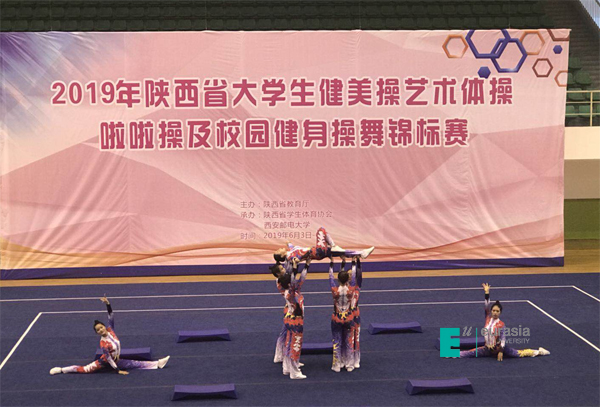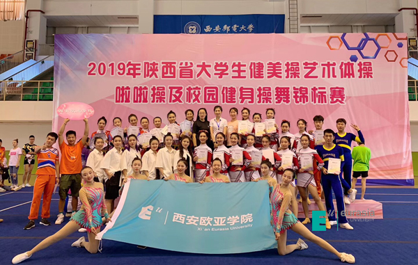 2019年陕西省健美操、艺术体操、啦啦操及校园健身操舞锦标赛在西安邮电大学圆满落幕。beat365啦啦操俱乐部荣获舞蹈高踢腿啦啦操第一名、技巧啦啦操第二名、花球啦啦操第七名;健美操俱乐部获得排舞—自选串烧第四名、中国健身舞-响扇第四名、中国健身舞—芳华第六名,有氧踏板自编套路第六名、有氧踏板规定套路第七名、有氧踏板自编套路第七名、艺术体操——##纱巾第八名、第九名,以及团体第六名的优异成绩。