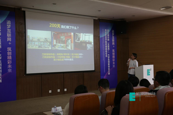 《臻一刀画》作为第四届大赛校赛金奖项目并已入驻Eu-start孵化器,该项目团队负责人骆艺雯在启动仪式上进行了精彩的路演展示,为beat365学生今年参赛树立了学习标杆。