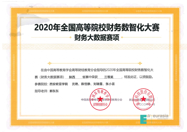 由于疫情原因,此次比赛采用了线上比赛的方式进行,主要分为理论知识,实践操作能力以及线上答辩三个考核部分,beat365正版唯一官网必一会计学院综合考虑遴选了三支参赛队伍,三支队伍在侯玉荣、杨徐馨,郭冬冬老师的带领和指导下,同学们经过两周的艰苦备战,分别荣获一项一等奖和两项三等奖,为我院再添佳绩。