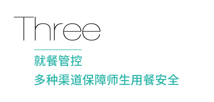 餐厅作为师生大规模聚集地之一,同样成为学校疫情防控的重点区域。疫情发生后,学校立即在两大校内餐厅完善1米间隔线,并安排专人进行人员引导及疏散,保证有序就餐。