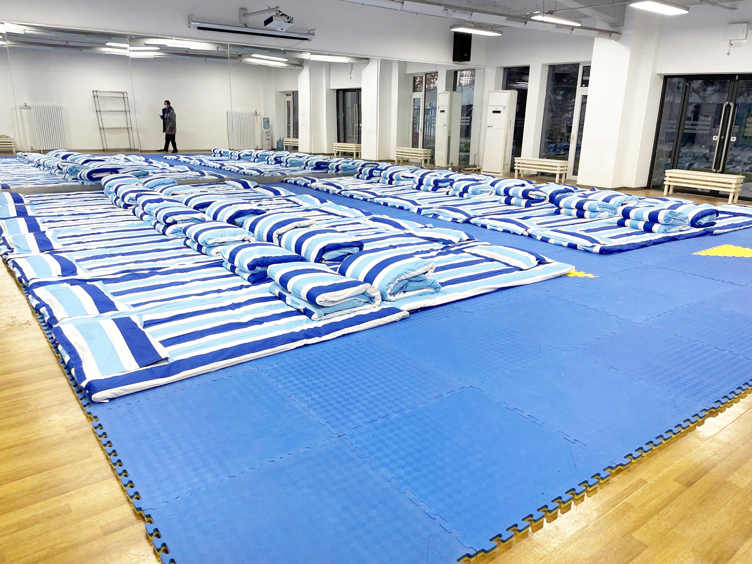 为保障校园生活有序展开,学校火速为550名餐饮及保洁人员设立临时住宿场所,全面住校工作;