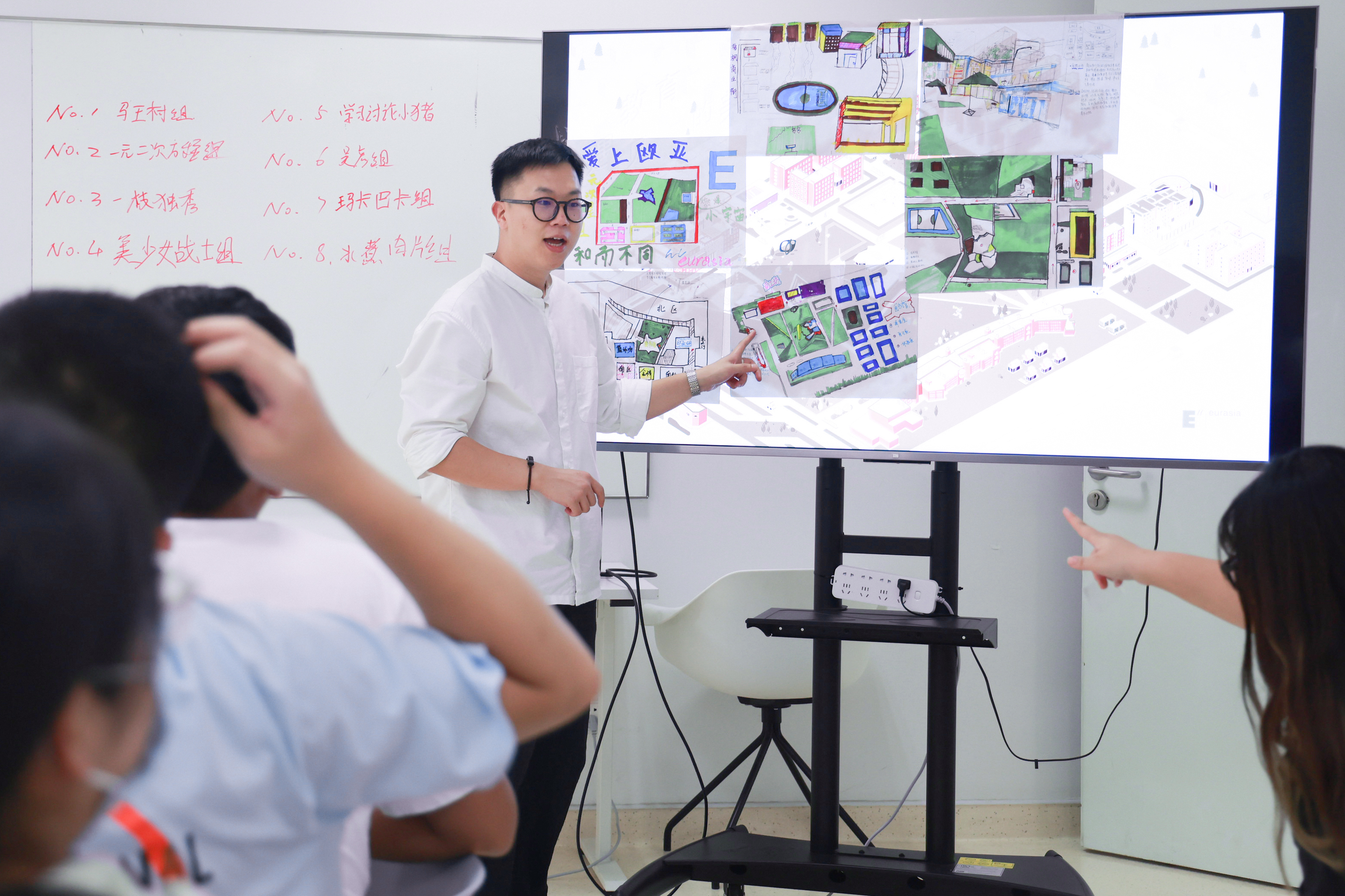 新生体验营的第一站从认识校园开始。欧亚每一处建筑都隐含着对于教育的认知,新生们分组去探索欧亚标志性区域,不仅是要认识和熟悉校园,更多的是要去探知欧亚是如何定义空间。自然与建筑应该和谐共处,学习也不只发生在教室里,人的需求应该被看见和尊重,“美”是日常生活的一部分。新生们兴致满满地去探索、去发现、去记录,不仅作为空间未来的使用者,也是未来的建构者。