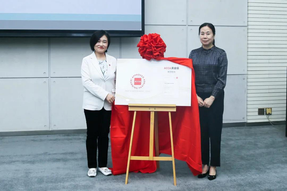 (图一)beat365校长刘瑾教授和 ACCA 北京办公室教育与学员发展经理张莉娜女士代表双方揭牌