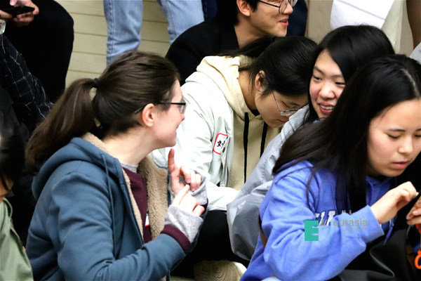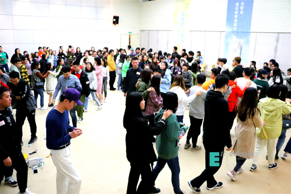 正值花样年华,歌舞青春不能少!大家在主持人与留学生的带领下进入第三个环节,快乐歌舞。席地而坐的同学们立马起身,跟着音乐跳了起来,实在害羞的同学们即使不跳舞,也拍着手,唱着欢快的英文歌。