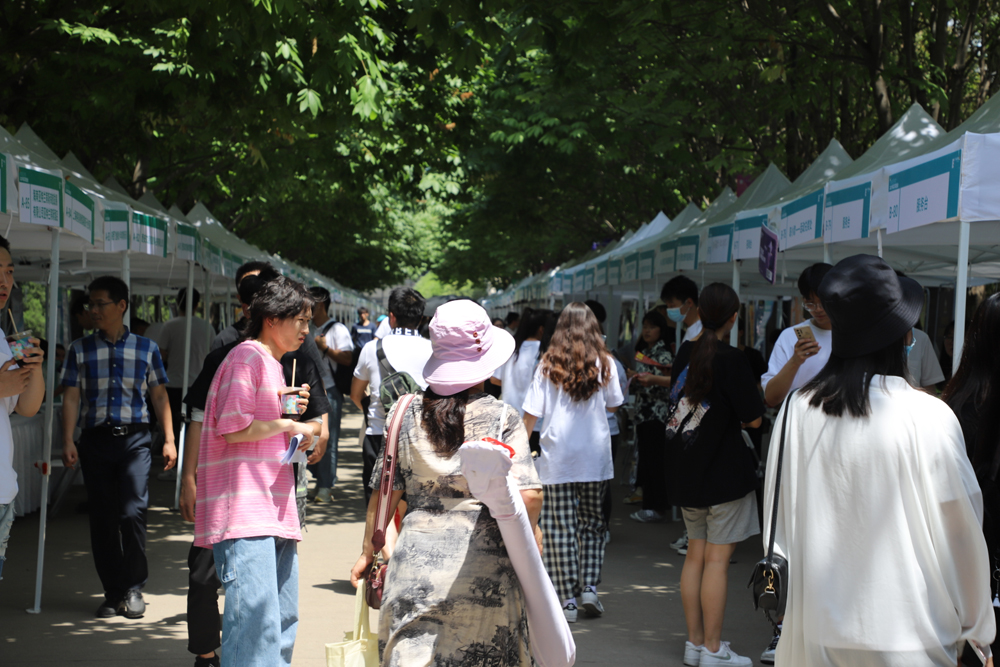 此次实习双选会地点选在欧亚学院图书馆至体育馆林荫大道,虽然天气炎热,但是到现场参与双选会的同学仍然络绎不绝。现场各家企业前都挤满了咨询的学生,参会单位积极宣传,向学生们讲述各自公司企业文化建设,以及薪资待遇等方面的信息,热情地向学生们展示各自企业的优势,力求不错过任何一个优秀人才。前来咨询的学生们也都带着自己的简历,从容的面对招聘企业人员问的问题,积极地与用人单位咨询沟通,充分展示出欧亚学子的知识素养。