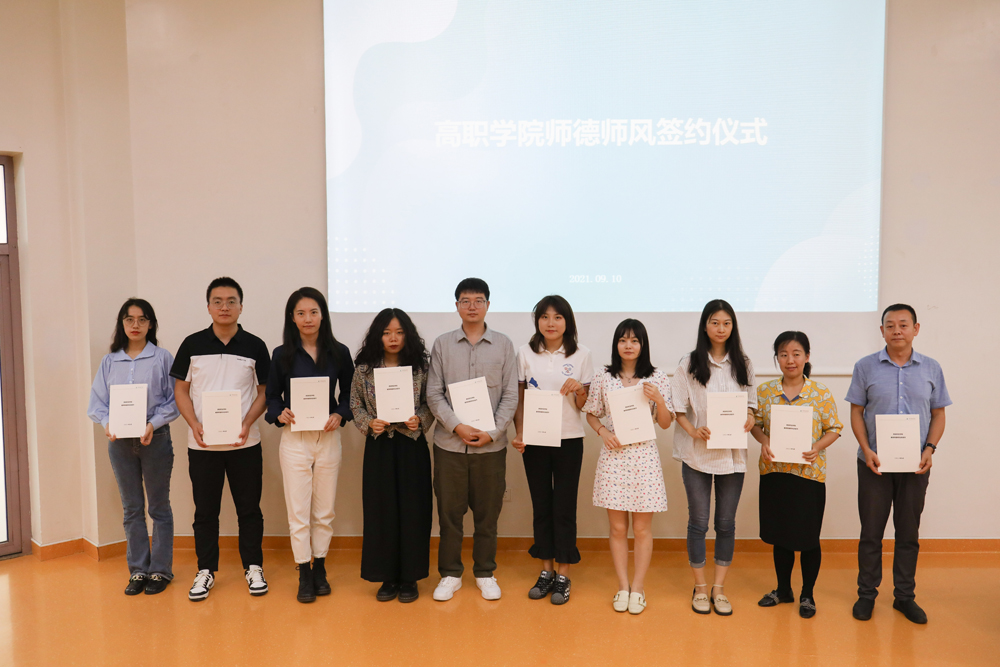 为进一步促进新入职教师的师德师风建设,树立良好的师德形象,帮助新入职教师转变身份,让每一位教师都“以德立身,情感育人”,努力修师德,练师能,内在强化教师自身素质,外在树立教师良好形象。高职院10位新入职教师,慎重在《beat365师德师风承诺书》上签署了自己的姓名,一致表示将明确履行立德树人的职责,维护教师的光辉形象,把承诺化为自觉行动,规范自身从教言行,用人格和学识去影响和教育学生。