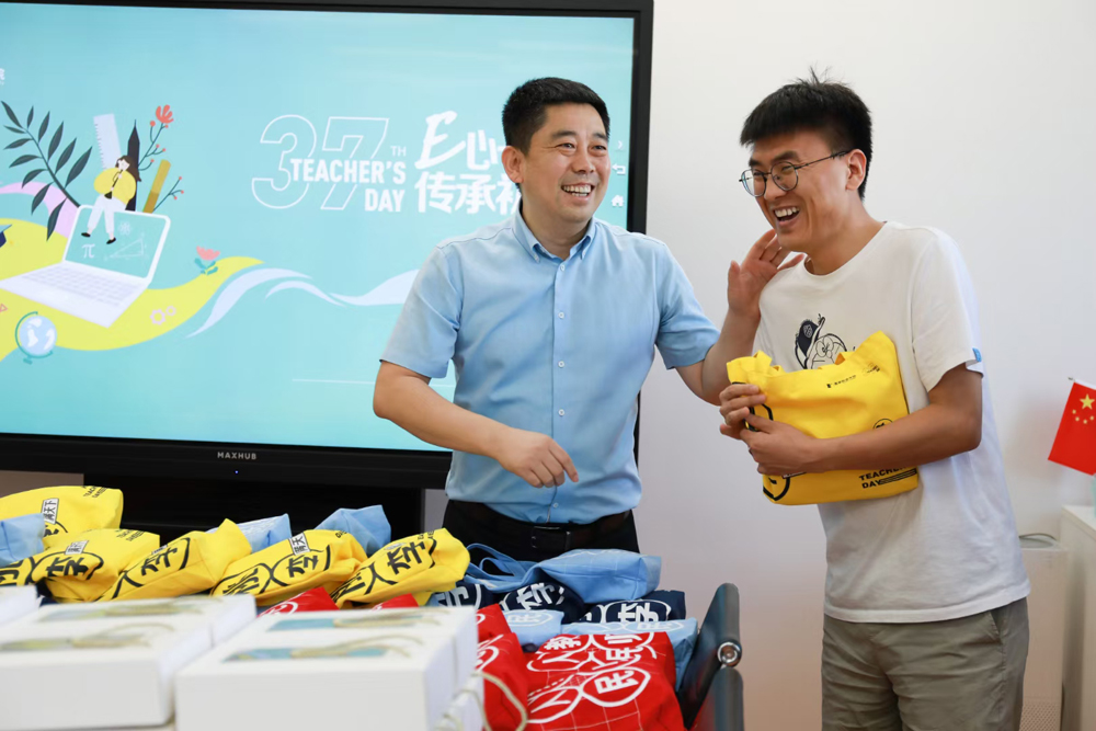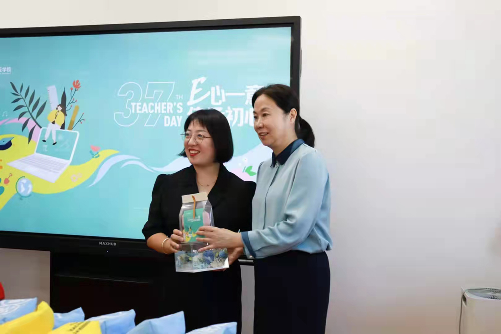 刘瑾校长为4位入职十年的老师赠送了精美的礼物,感谢他们一直坚守在教育第一线,全心全意的投入到教育事业中。