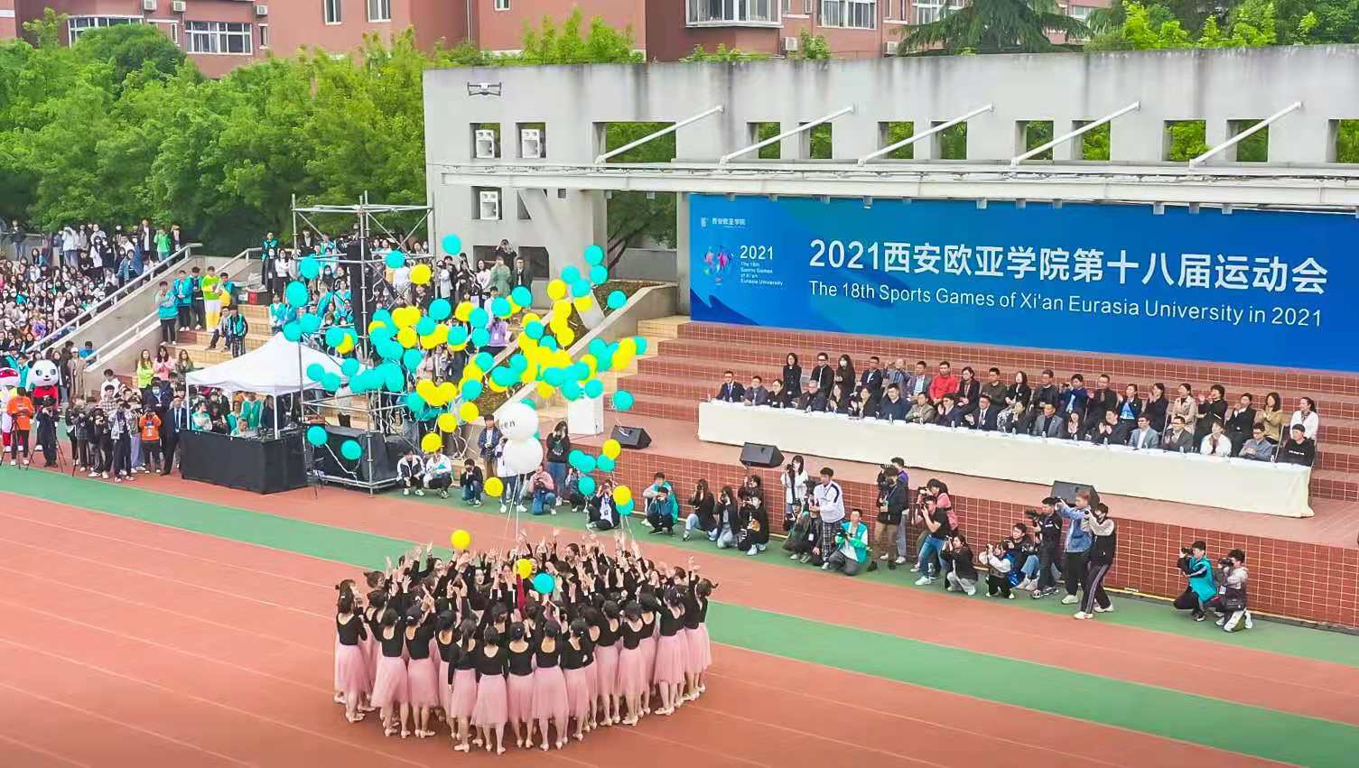 为了迎接第十四届全运会,营造“全民全运、同心同行”的积极氛围,学校采用多种形式鼓励师生们参与各类体育运动。通识教育学院青年教师代表和参加体育联赛的学生代表们组成的欧亚阳光跑,他们挥舞着手中的旗帜,向全校师生发出号召:大家一起“走下网络、走出宿舍、走向操场”,积极参与到体育运动中来,在运动中享受快乐、收获健康。