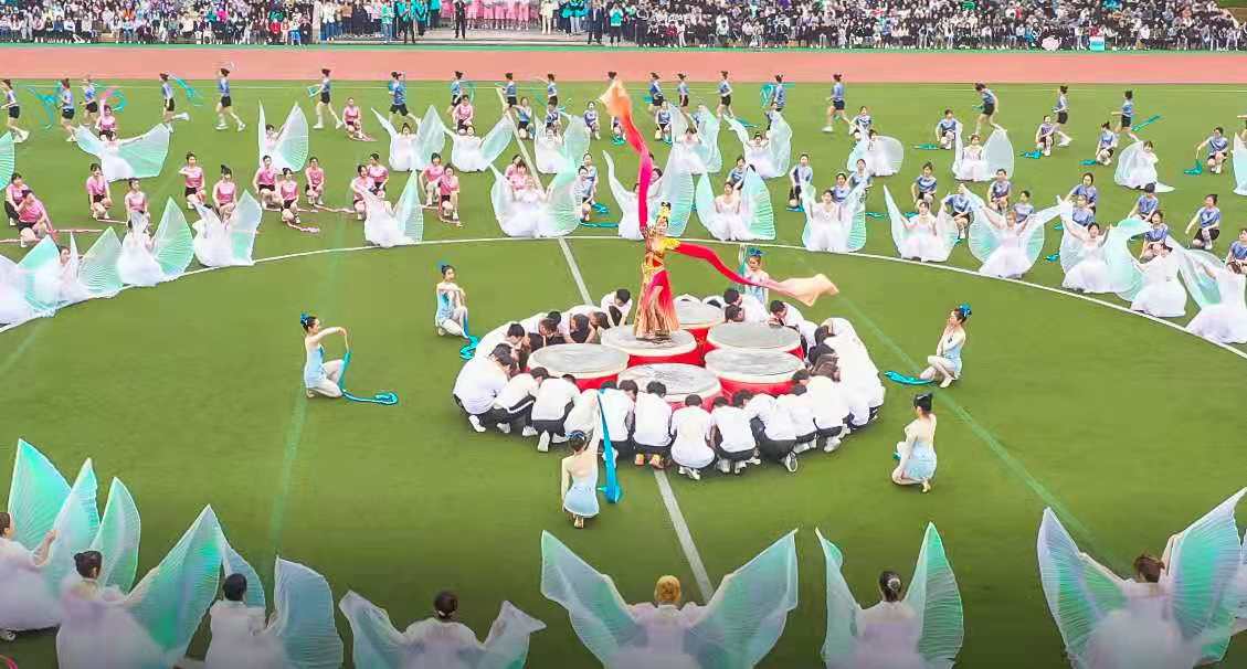 最后,四个大型团体操将运动会开幕式推向了高潮。《飞young年华》中的鼓号队和花球表演、《炫Young青春》中挥动的花伞和充满活力的团体操、《花young欧亚》中翩翩起舞的蝴蝶和灵动的水袖舞、《多young未来》中动感的街舞和潇洒的滑板,都承载着欧亚的梦想和希望,跳出青春的节拍,舞动生命的色彩,让我们感到青春的力量和创造的激情,体现了欧亚对美的追求与传承。