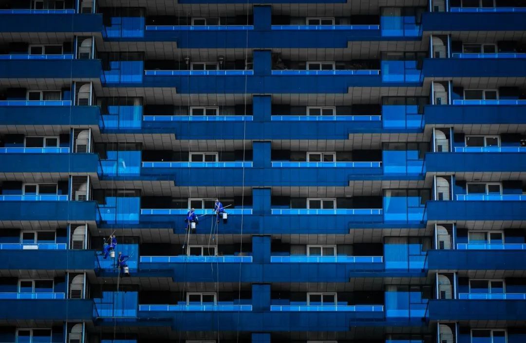 作品简介:《蓝》这幅照片所传递的信息和情感是深远而强烈的。工人们的身影在高空中显得微小而脆弱,但他们的勇气和专注却让人无比敬佩。蓝色的墙体给人一种冷静和坚定的感觉,同时也象征着工人们所肩负的责任和使命。