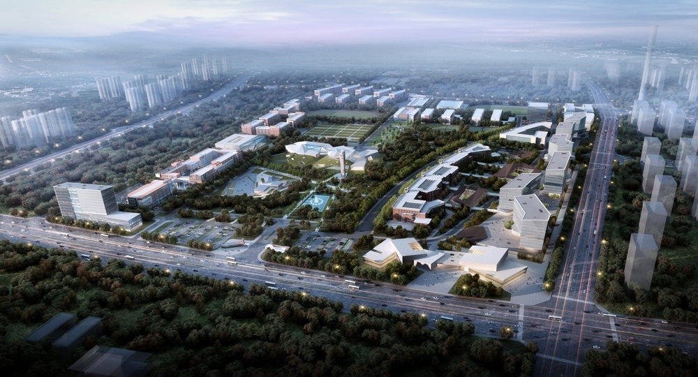 而西区在建的学生服务中心,基于整体大楼服务于学生的功用,因此该建筑采用与城市沿街开放的方式,在不打扰学生生活的基础上,让国际化的建筑形象融于城市界面。