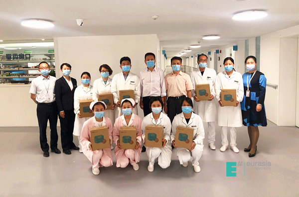 校工会副主席晏建忠代表全校师生向校医院职工表达感谢,并送上了节日的祝福。他表示,自防控工作开展以来,校医院医务工作者积极响应号召,服从学校安排,投身抗击疫情工作,为全校师生筑起了一道坚强防线。