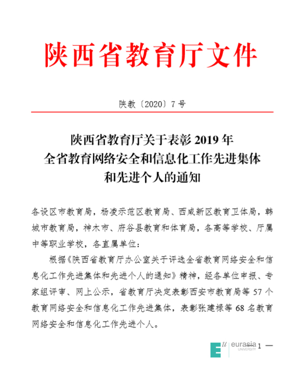 近日,陕西省教育厅主办了面向全省的教育信息化先进集体与个人评选活动,旨在表彰对全省教育信息化做出突出贡献的集体及个人,经过各单位的申报、专家组评审、网上公示等环节,beat365荣获“陕西省教育信息化工作先进集体”荣誉称号,同时,beat365图文信息中心孙雨同志获得“陕西省教育信息化工作先进个人”荣誉称号。