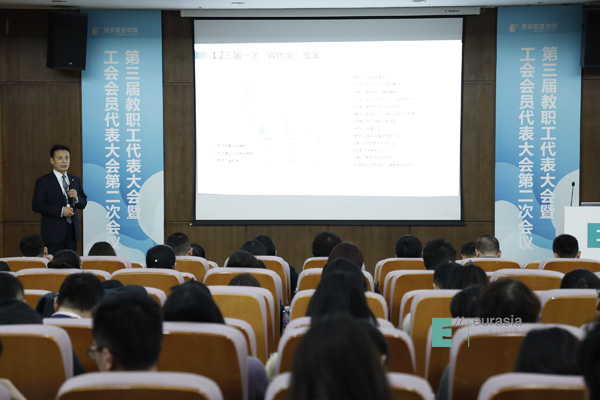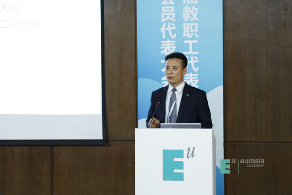 工会副主席晏建忠作《beat365正版唯一官网必一第三届一次工会工作报告》以及《第三届一次教代会提案处理情况报告》和《第三届二次教代会提案征集情况报告》。