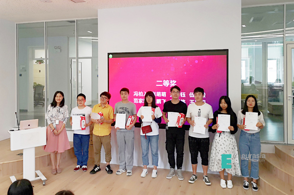 张璐老师随机抽取学生进行即兴发言,现场气氛活跃,学生说的最多的就是感谢,相信他们在以后的生活和职业中都像这次大赛一样能怀着感恩、勇敢的心,奋力向前。本次大赛指导老师-曹小菊老师为获得一等奖的6名同学以及获得二等奖的8名同学进行颁奖,大赛指导老师-张璐老师为获得三等奖的11名同学以及优秀奖的7名同学进行颁奖,颁奖彩蛋由曹小菊老师为三位同学颁发最佳贡献奖:伍毅、张萌萌、李怡婷,三位同学也分享了自己参赛的心路历程与获得成长。