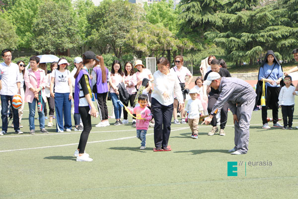 今年教职工运动会首次引入亲子趣味项目,共同关注“欧二代”成长, 共有54组家庭参与。本次的踏石过河活动,让家长和孩子一起合作,小朋友们作为活动主力,协助父母快速跑到终点。在活动中,小朋友们在一起交流活动。家长与孩子之间充分互动,不同家庭小朋友间愉快交流,孩子们也体会到了帮助父母的小小成就感,一张张灿烂的笑脸,让我们我们到了"欧二代"的勃勃生机。