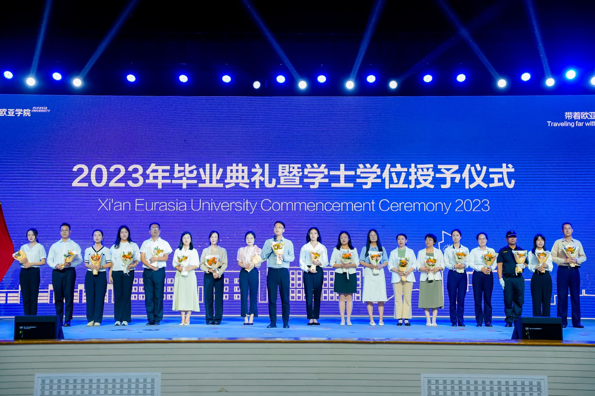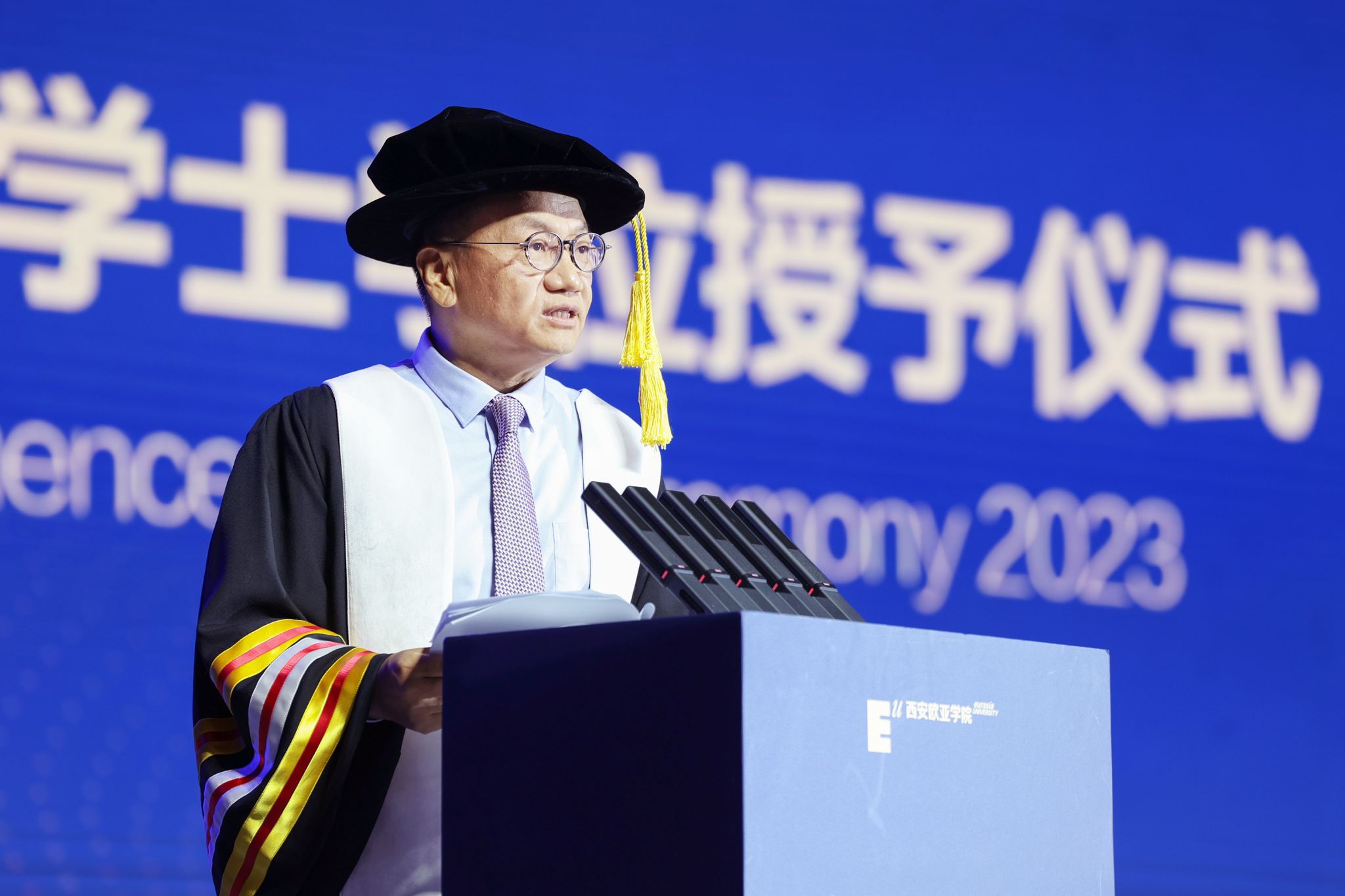 2023届的毕业生,因为疫情的原因,经历了特别不一样的大学生活,无论对你们还是对欧亚,都是全新的困难与挑战。在此,我要特别感谢在座的同学们,正是我们共同的勇敢面对,才度过了艰难的疫情时刻,让同学们学有所成、顺利毕业。(掌声)